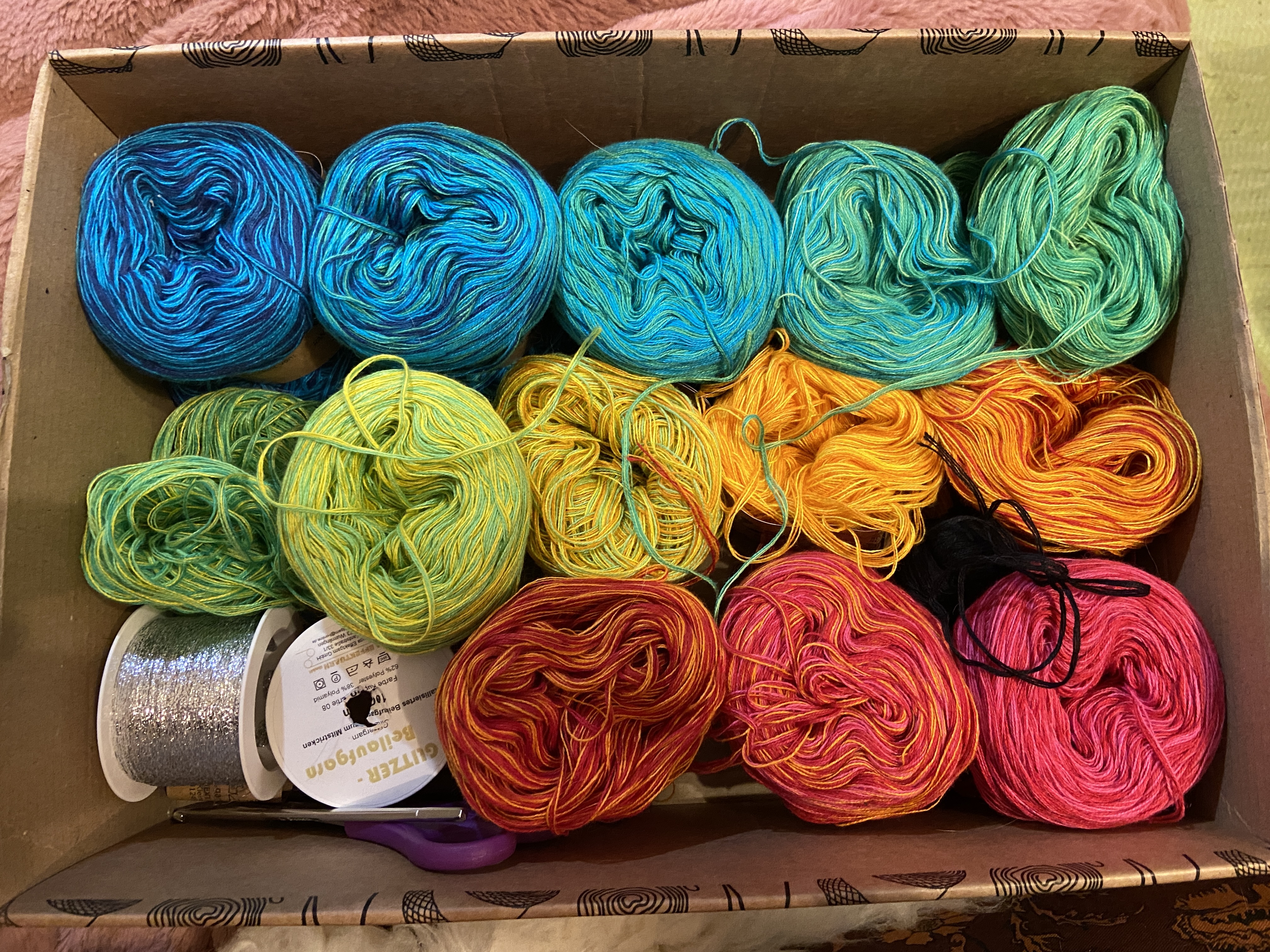 Rein theoretisch musste ich mich also nur jeden Tag für etwa eine halbe Stunde hinsetzen und die Kachel für den Vortag machen. Klingt völlig realistisch, oder? Also habe ich das Set gekauft und mich drangesetzt. Und natürlich lief es NICHT immer so schön regelmäßig. Manchmal war ich Abends zu müde, um mit mehreren Farben zu häkeln. Manchmal hatte ich keine Zeit. Manchmal musste ein anderes Projekt fertig werden – oder ich war auf Reisen, da nimmt man lieber nur ein Knäuel mit statt einer Box voller Garn.